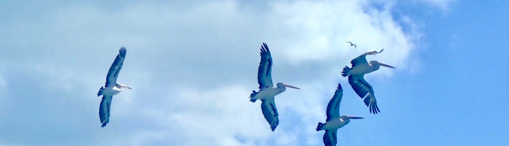 Amongst all of these are the huge, ever present pelicans. We took the dingy for a run up the river and while on a crocodile hunt amongst the mangroves on the far bank, (probably still a little south for crocodiles but thought it was never too early to get some practice in) overhead a flock of pelicans, Jurassic like with their oversized beaks, gave us a magnificent demonstration of formation flying.