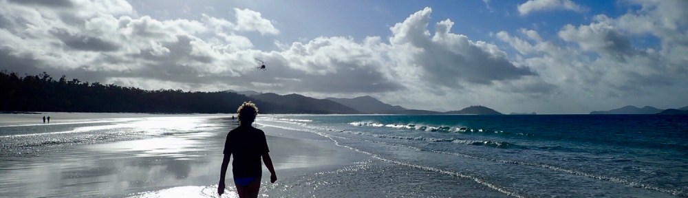 We headed to the famous Whitehaven beach. On our first visit to this beach, over thirty years ago, this expanse of fine white sand blew us away, the many photos we still have keeping our memories fresh. This time, with our level of beach appreciation somewhat higher and with the advent of the day tripper, it didn’t seem quite so special. However as we walked away from the crowds and five miles of white sand, with grains so fine they squeaked beneath our feet, spread out before us, it’s beauty was more evident. A ray darted from our path in the shallows, helicopters and seaplanes buzzed over our heads and now protected from the wind the late afternoon sun felt pleasantly warm and on our faces.