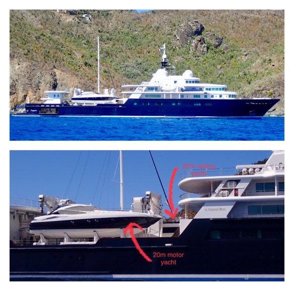 The most luxurious of all is Le Grand Bleu, who at 113m long is one of the largest private yachts in the world and on her deck has, indulgently, a 22m sailing yacht (that’s 5m longer than Raya) and a 20m motor yacht. If Wikipedia is to be believed it was exchanged in payment for a lost bet between two Russian oligarchs.