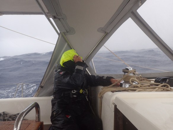 The movement below made life extremely difficult, having to put on and off our heavy wet weather gear, boots and life jackets each time we changed watch was exhausting. The niceties of life, all thoughts of writing a ‘finally left New Zealand’ blog, even trying to read, were quickly put aside. It was all we could do to make sure we ate something and got some sleep. Shares in our seasickness medication of choice, Stugeron, will be sky rocketing.