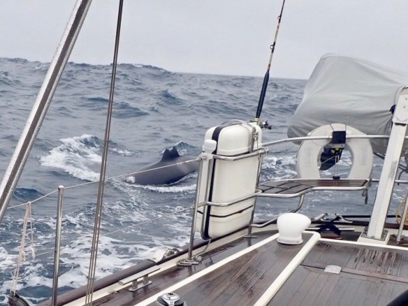 The wild life, however, didn’t seem to be put off by these cooler temperatures and despite the rougher seas we spotted a couple of what we think were fin whales a hundred or so metres off to starboard and numerous pods of dolphins came to say hello, but the highlight was a group of Orcas. Easily identified by their black and white colourings we were delighted when a few swam closer and closer, ducking and diving right next to the boat just like the dolphins had.