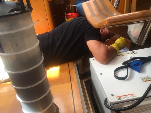 Our next stop was, for contrast, deep inside the 2.5nm long Nara inlet, at only half a km wide we were encased by the high green hills.We couldn’t have wanted for a more tranquil spot, in fact Rick took advantage of the calm conditions, and the extra hands onboard, to drop the main sail and inspect the inmast furler.