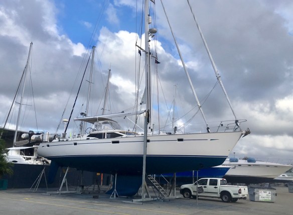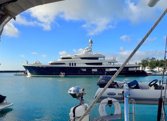 Thursday after ten hours of motor sailing we arrived in Cairns. The Bimini is on order and as this will be our last marina for quite a few months, preparations for the onward trip to Indonesia are in full swing. Unfortunately the weather has turned cloudy and wet, dodging showers has been the order of the day.