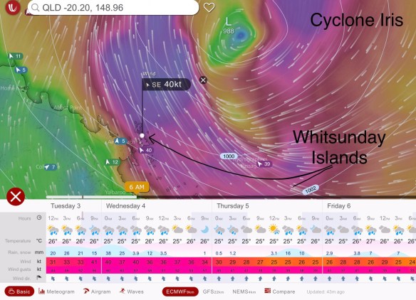 Last weeks forecast for the Whitsunday Islands five hundred miles to our north