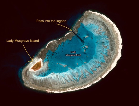 Lady Musgrave Reef on Google Earth, a jewel in the dark ocean