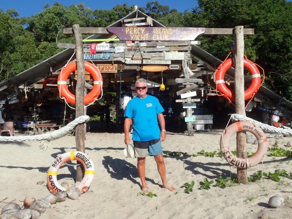 Every inch of Percy Island Yacht Club is covered in mementos from passing yachts.