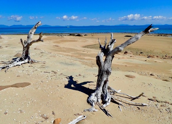 Our next anchorage was in Brammo Bay on the NE corner of Dunk Island. Yet another deserted resort sat perched on the beach, one more victim of cyclone damage and lack of investment. There is however still a regular ferry service bringing day trippers and campers from the mainland to enjoy the beautiful beaches and trails that crisscross the island.